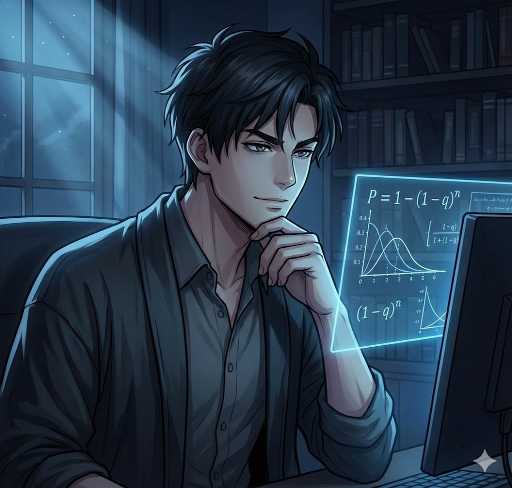 (1−q)^n という、冷たい指数関数で殴ってくる。